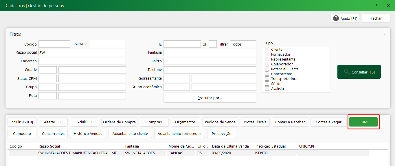 Alternativa 1: O módulo de CRM Gestão pode ser acessado a partir do cadastro de pessoas, vide imagem abaixo.