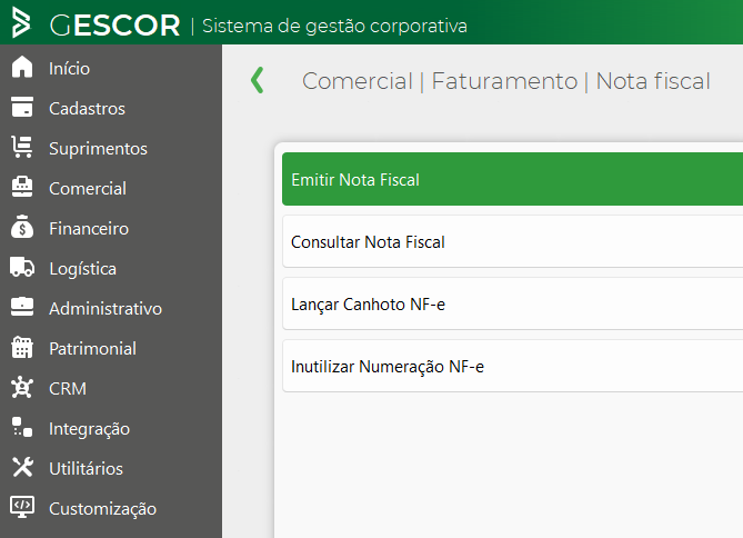 Antes de iniciar o processo da emissão da nota fiscal, sugerimos a coleta de informações, tais como, código do patrimônio, CFOP que será utilizada (caso não saiba, é importante verificar com sua contabilidade), quantidades, local de entrega, cliente transportador. Em posse destas informações, basta seguir os passos indicados abaixo: