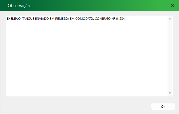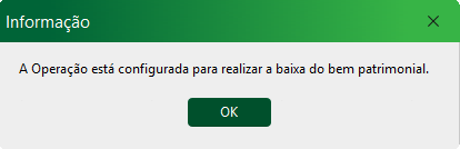 Ao finalizar o cadastro do item que será enviado em comodato, automaticamente será aberta uma pequena tela solicitando o registro da movimentação no banco de dados do sistema, nesta deve-se selecionar a opção “OK”.