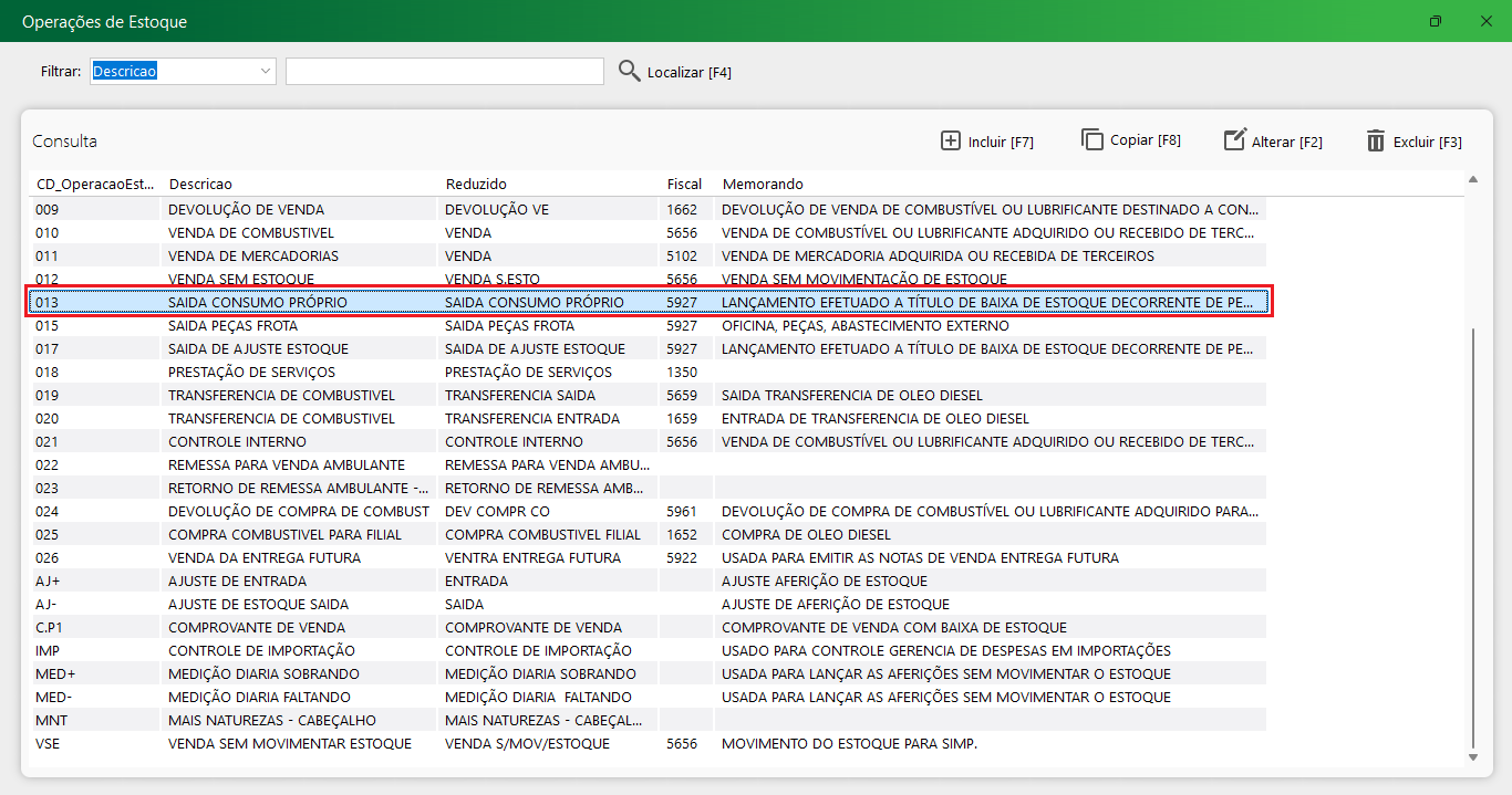 Nesta tela preenche-se no campo cliente o CNPJ próprio e no campo operação deve-se utilizar uma de consumo próprio já cadastrada. Para acessar uma operação já cadastrada, devemos clicar sobre o campo em branco e posteriormente no botão F4 do teclado. Será aberta uma tela de operações cadastradas.