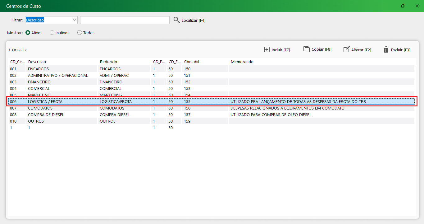 Já no campo centro de custo, deverá ser utilizado o responsável pelo consumo dos itens que serão mencionados na saída de item.