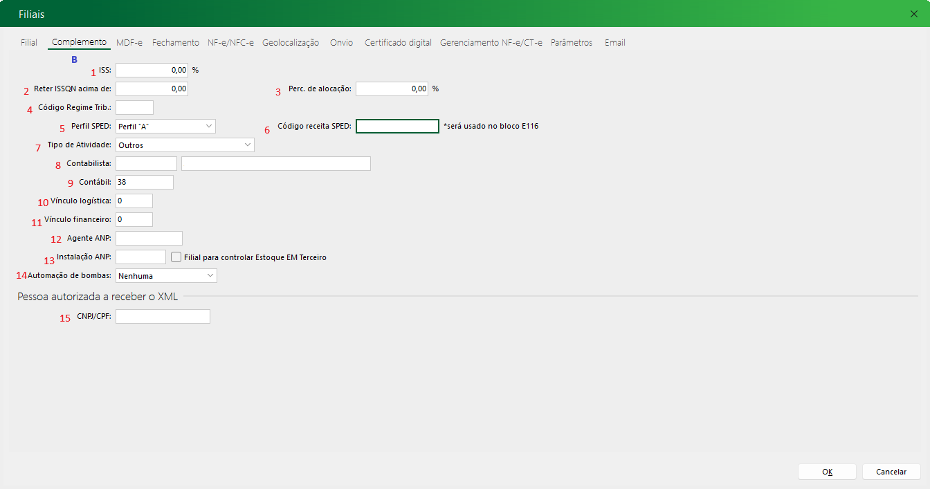 - CNPJ/CPF: Informa o CNPJ/CPF de uma pessoa que está autorizada a receber e consultar os XML’s das notas emitidas nessa filial.