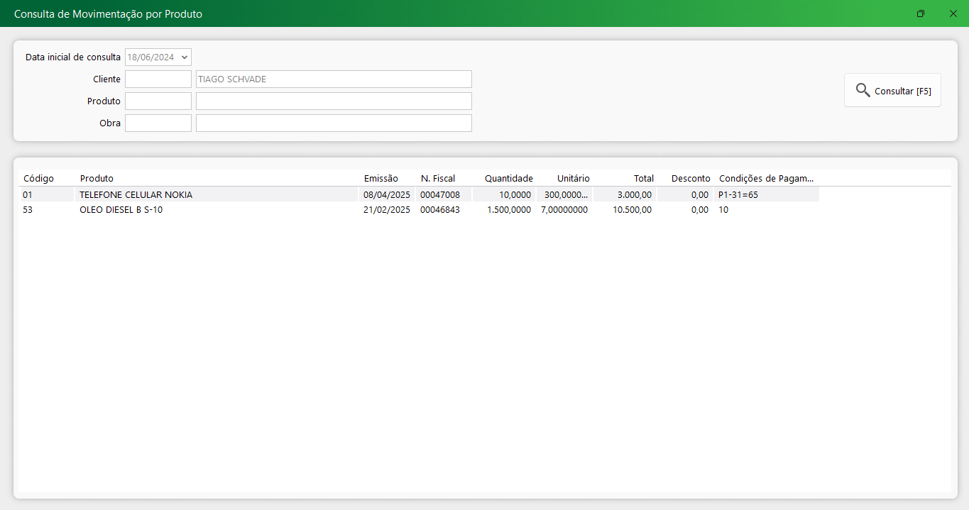Botão Histórico de Vendas: Este botão tem a finalidade de exibir o histórico de vendas do cliente dentro de determinado período.