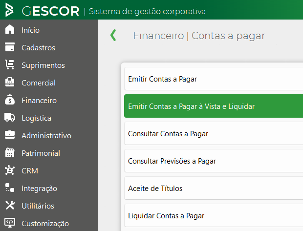 Emitir contas a pagar à vista e liquidar