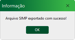 6- Ao finalizar o processo de exportação surgirá uma tela com a seguinte informação: “Arquivo SIMP exportado com sucesso!”