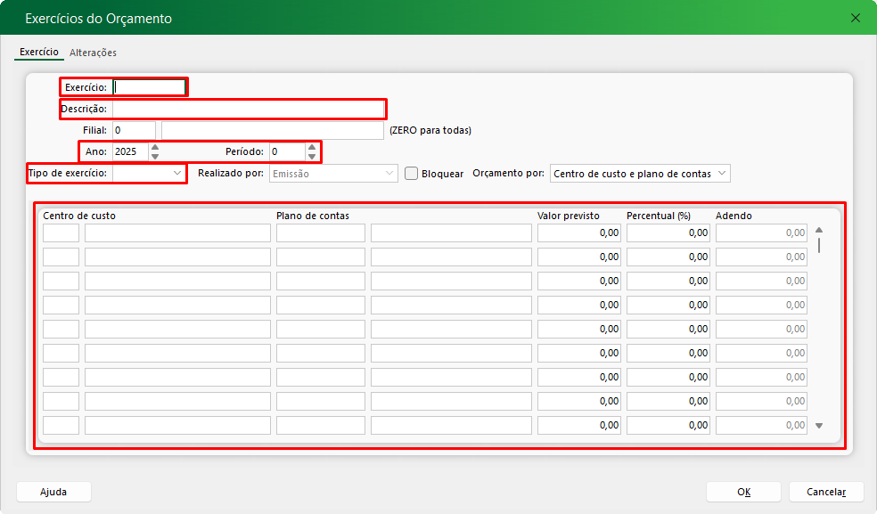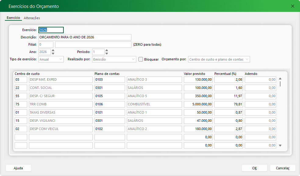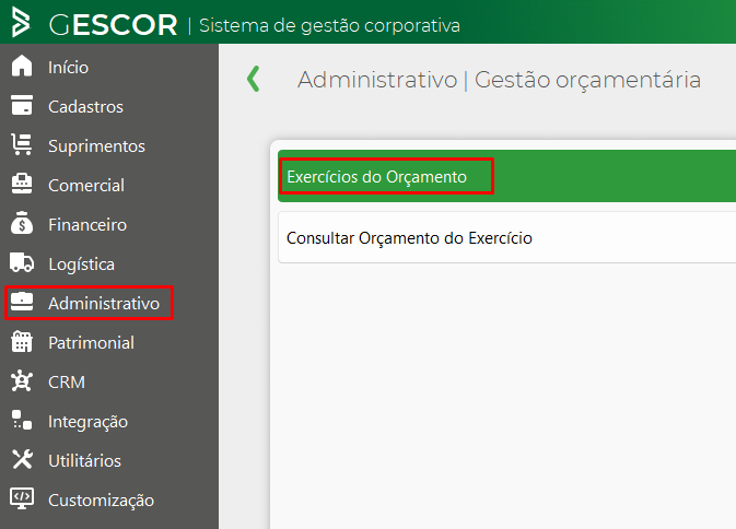 Administrativo -> Gestão Orçamentária -> Exercícios do Orçamento