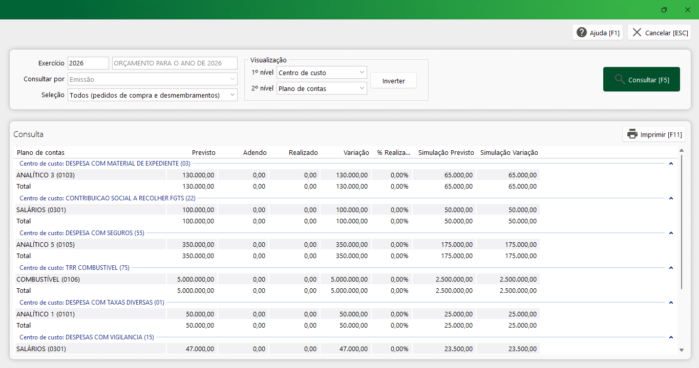- Visualizar e controlar as despesas para os períodos futuros;