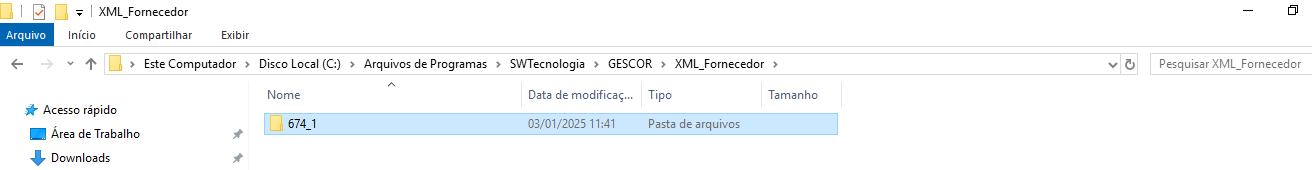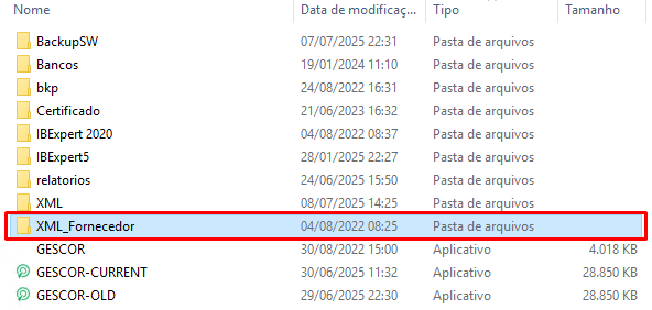 2. Ao acessar a pasta onde o GESCOR está localizado, basta clicar sobre a opção XML Fornecedor.