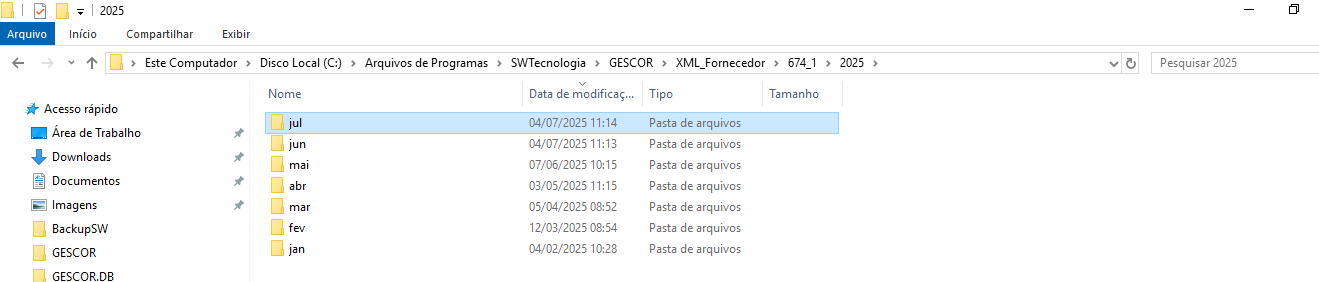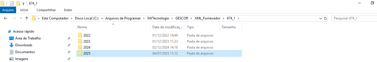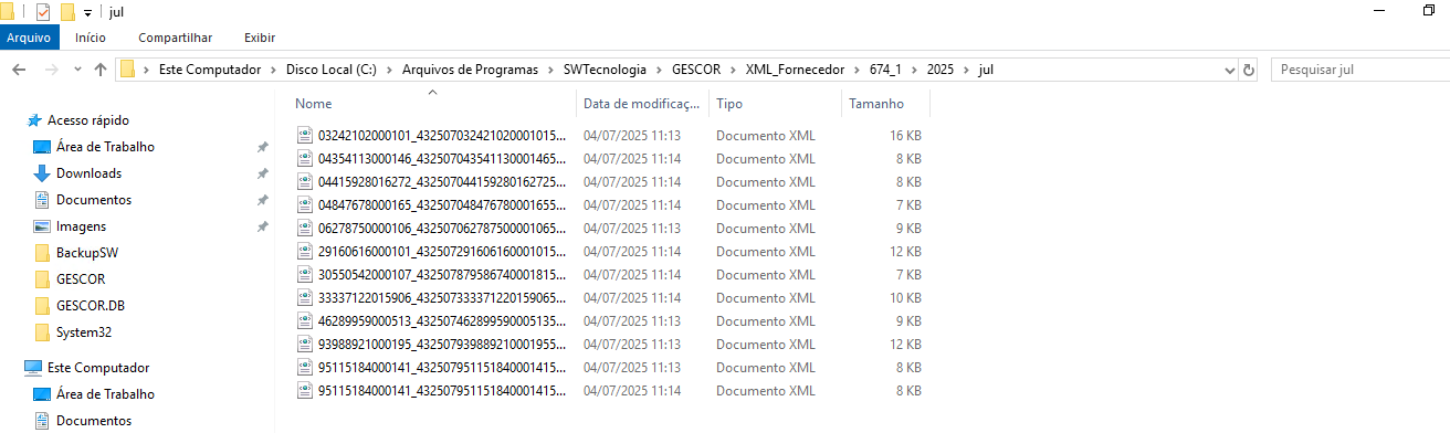 4. Ao tomar nota do diretório onde localizam-se os arquivos .XML de venda, basta acessar a pasta e copiar os arquivos respectivos ao mês da consulta e cola-los na pasta destino.