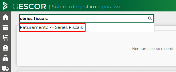 - Primeiramente é necessário acessar o menu de “séries fiscais”.