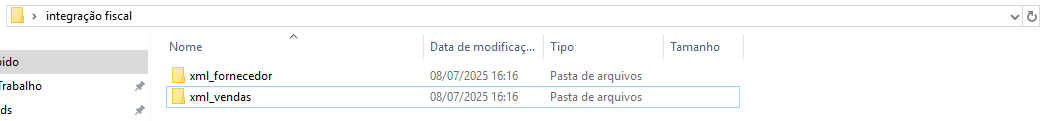 5. Abaixo uma imagem com as pastas respectivas aos arquivos .XML de entrada e de saída.