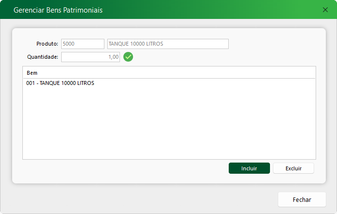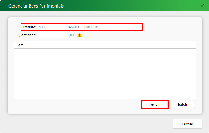 Ao selecionar o Ok, será aberta uma nova tela na qual pode-se indicar a movimentação do item em comodato. Deve-se selecionar a opção “incluir” para iniciar o processo.