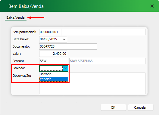 Processo de Venda/Baixa de bem Patrimonial: