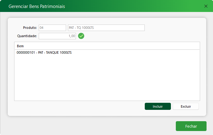 6-Após selecionar a opção “OK”, novamente será apresentada a tela de Gerenciamento de Bens Patrimoniais, porém já atualizada com o bem.