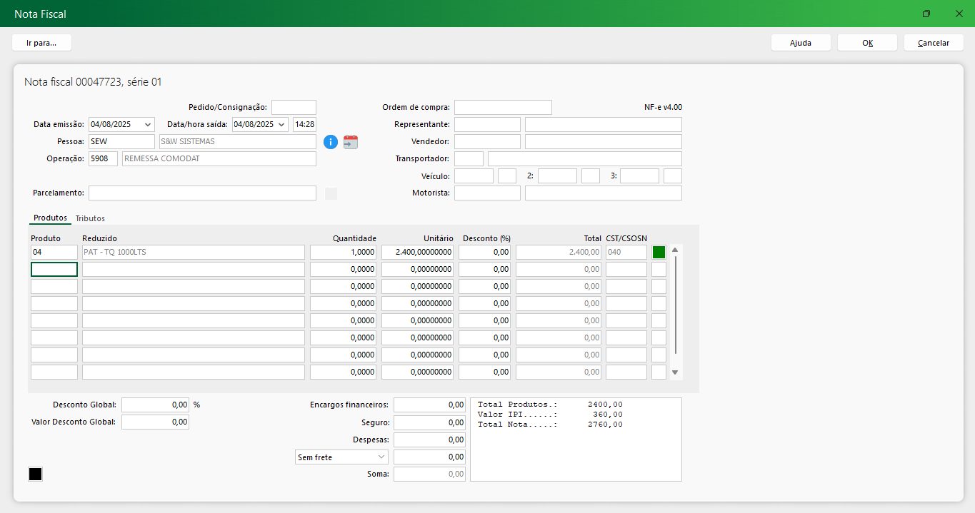 Ocorrência 4 - Nota fiscal de venda/baixa de bem patrimonial