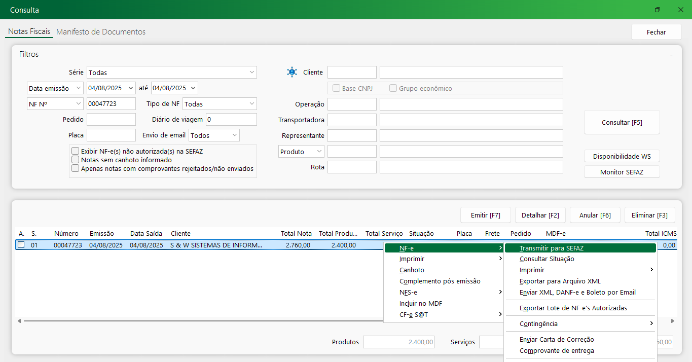 7- Nesta etapa, basta transmitir a nota fiscal para a SEFAZ. Ela já terá baixado ou vendido o bem.